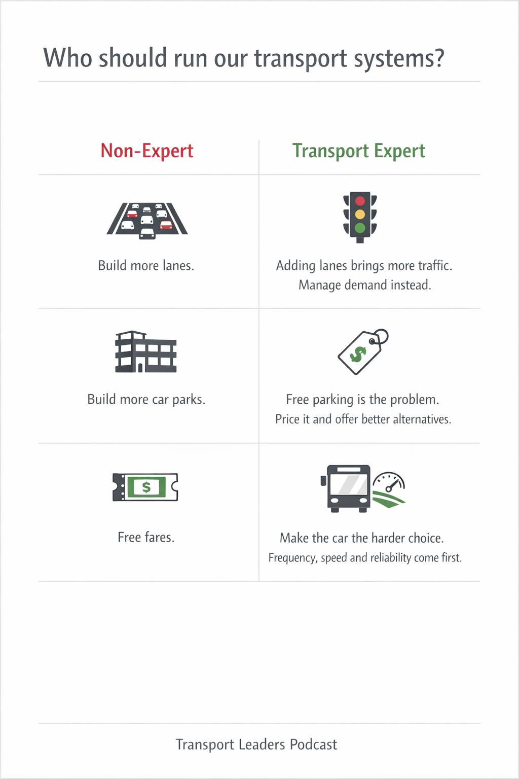Transport is no different. The calls to build more roads to solve congestion, to offer free parking, to make public transport fare-free, these ideas enjoy broad public support. And yet the evidence tells a different story. So why do we keep reaching for solutions that do not work?