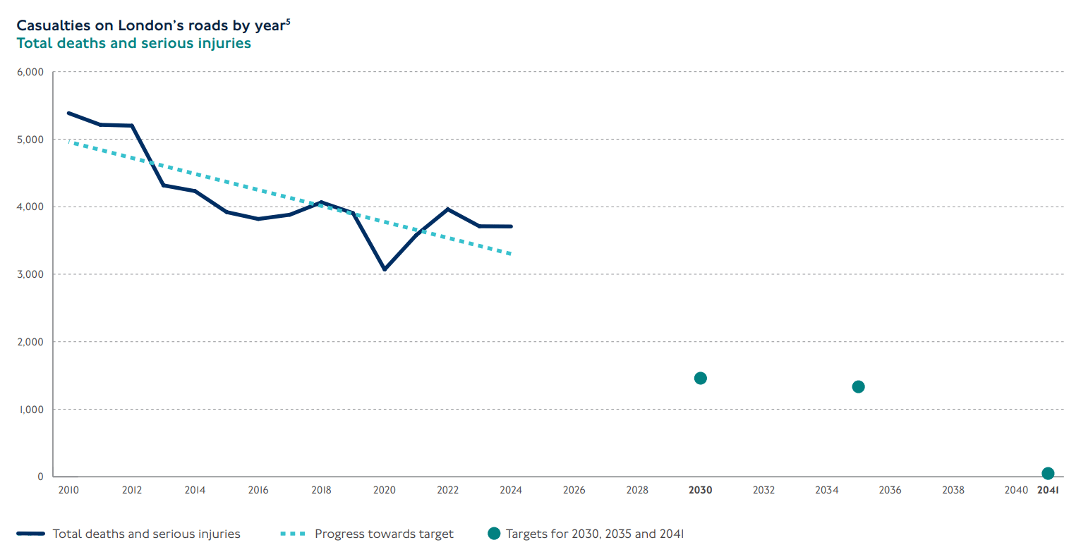 - London is retaining the target of a 70 per cent reduction in the number of people killed and seriously injured by 2030 compared to the 2010-14 baseline.